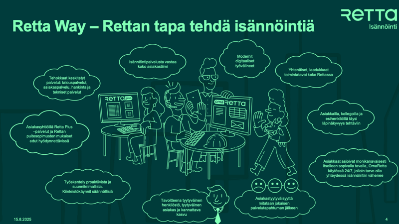 Modernit työvälineet ja prosessit – Käyttöönotettu RettaWay-toimintamalli, joka selkeyttää isännöinnin prosessit ja parantaa asiakaspalvelun laatua.